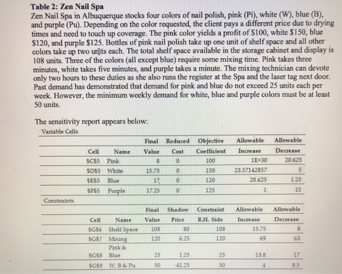 Solved Table 2 Zen Nail Spa Zen Nail Spa In Albuquerque