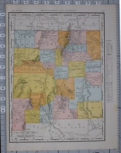 1906 Mapa Estados Unidos Nuevo Mexico Condados Ciudades