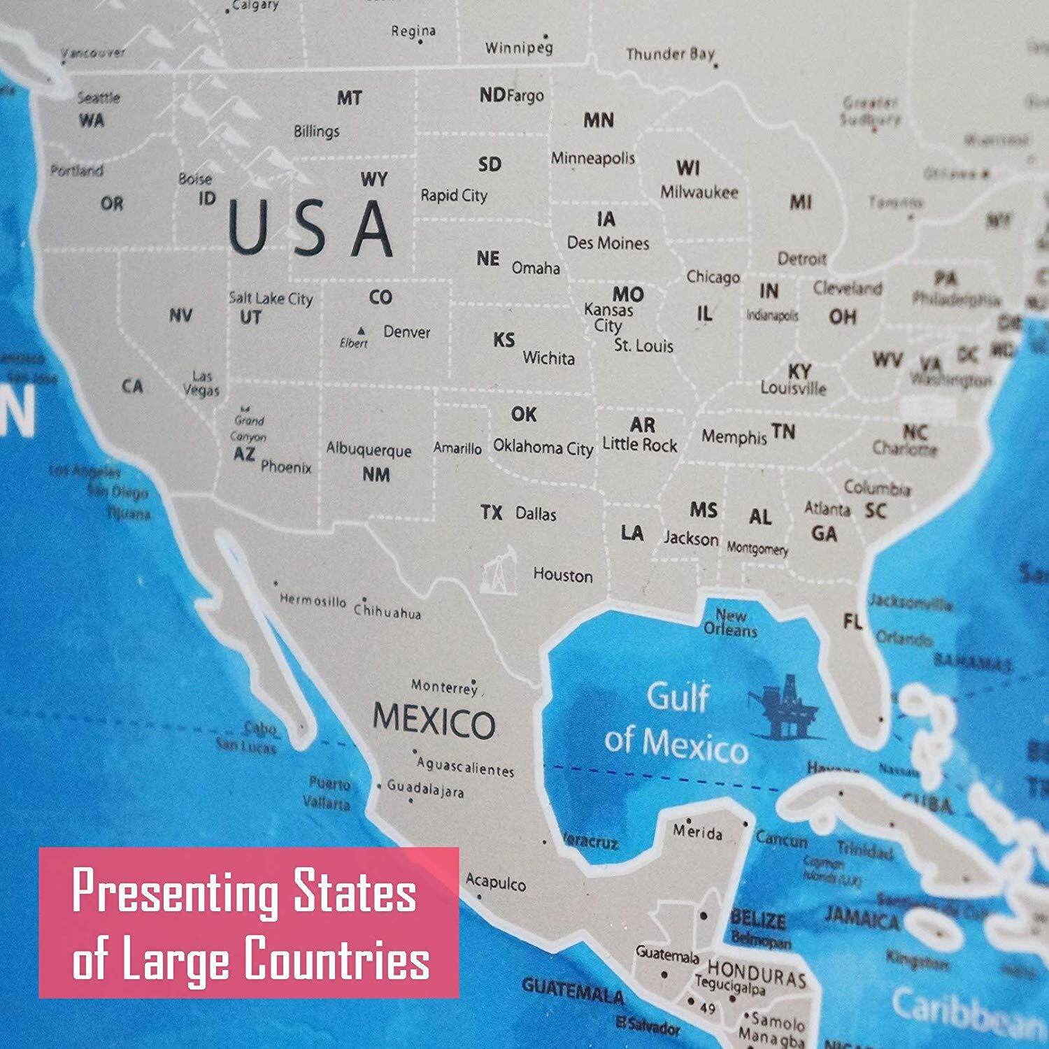Utalqc Scratch Off World Map Poster Silver Land And Blue Ocean