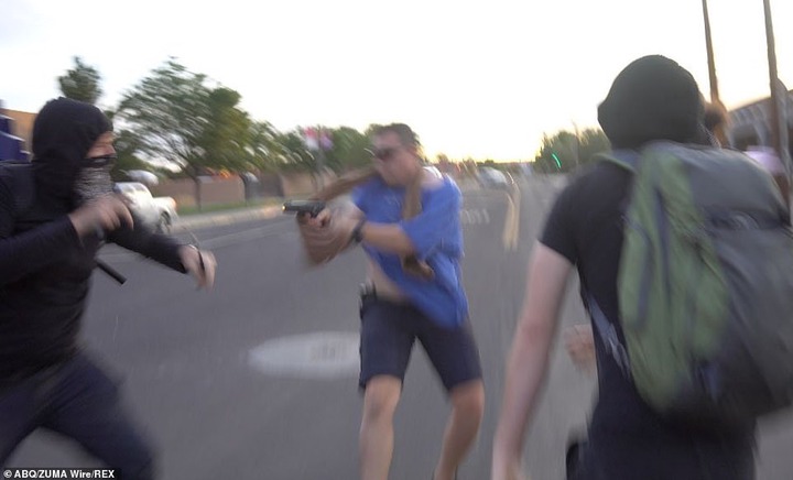 A man was shot after gunfire erupted at a demonstration in new mexico on monday where protesters attempted to topple a bronze conquistadors statue outside an albuquerque museum authorities said.