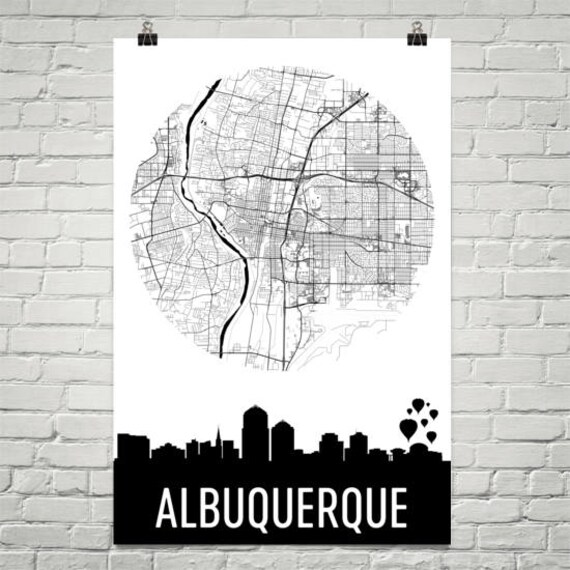 Albuquerque Skyline Albuquerque Map Albuquerque Skyline Art Etsy
