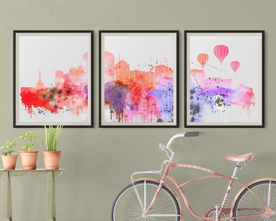 Set Of 3 Prints Albuquerque Skyline Triptych Wall Art Of Etsy
