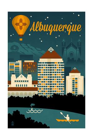 Albuquerque New Mexico Retro Skyline Art Print Lantern Press
