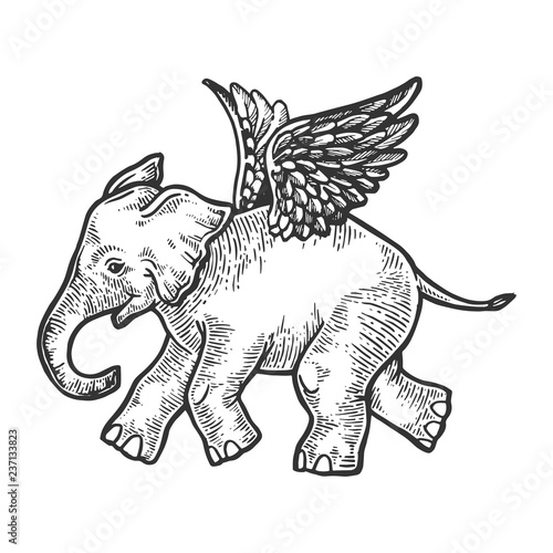 Angel Flying Baby Elephant Engraving Vector Illustration Scratch