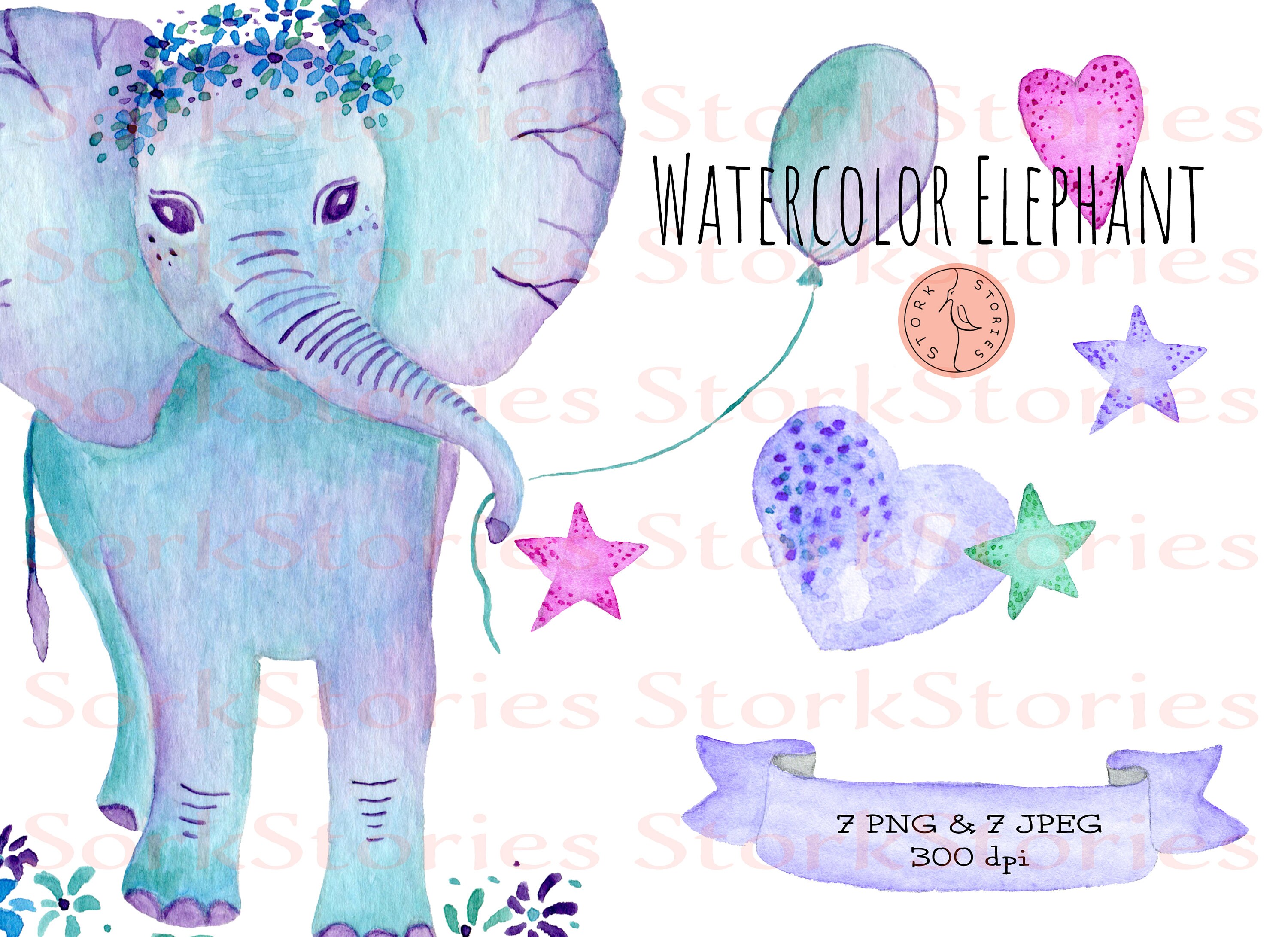 Cute Elephants Clipart Watercolour Animals Baby Shower By