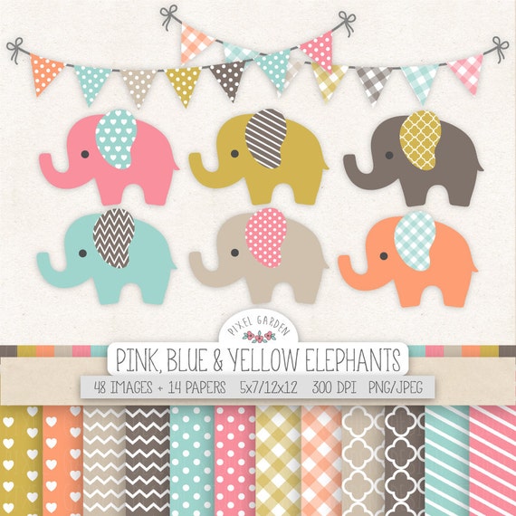 Cute Elephant Clipart Baby Shower Clip Art Digital Paper Etsy