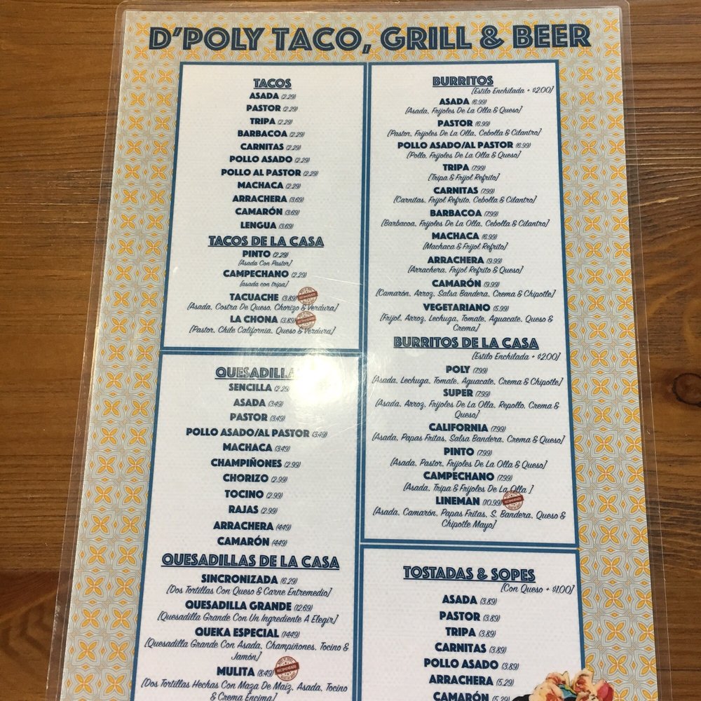 Online Menu Of Dpoly Taco Grill Beer Restaurant El Centro