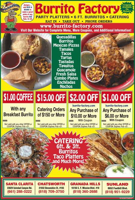 Burrito Factory Delivery 23029 Soledad Canyon Rd Santa Clarita