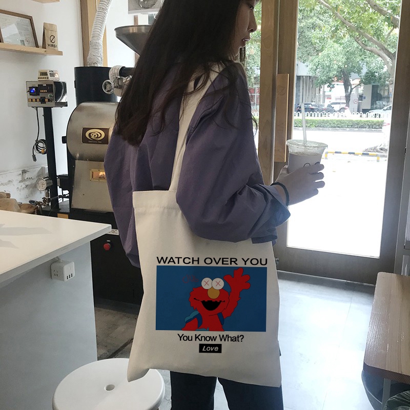Watch Over You Sesame Street Elmo Canvas Tote Bag Ulzzang