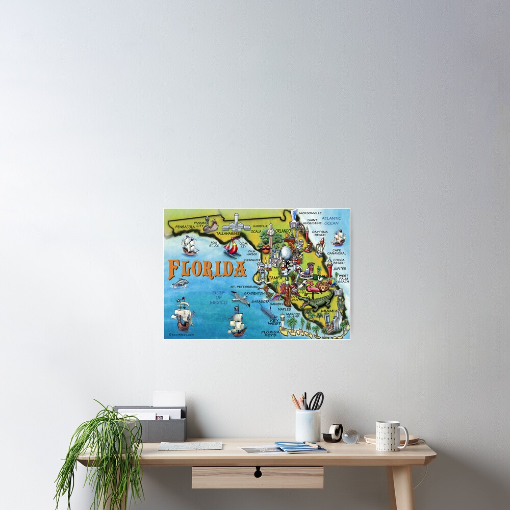 Cartoon Map Of Florida Poster By Kevinmiddleton Redbubble