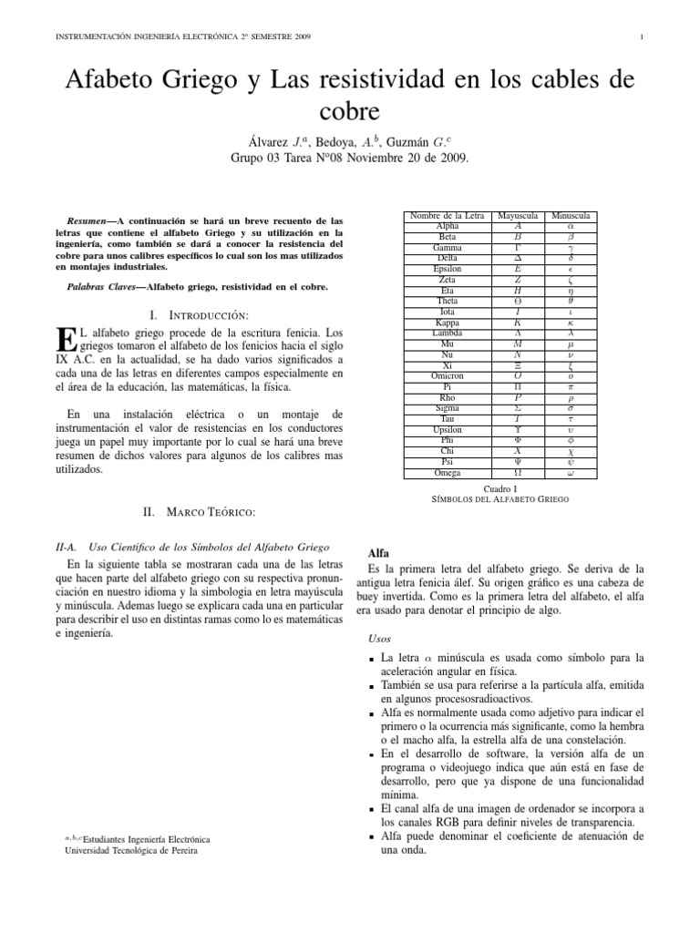 Alfabeto Griego Y Resistividad En Cables Resistencia Electrica Y