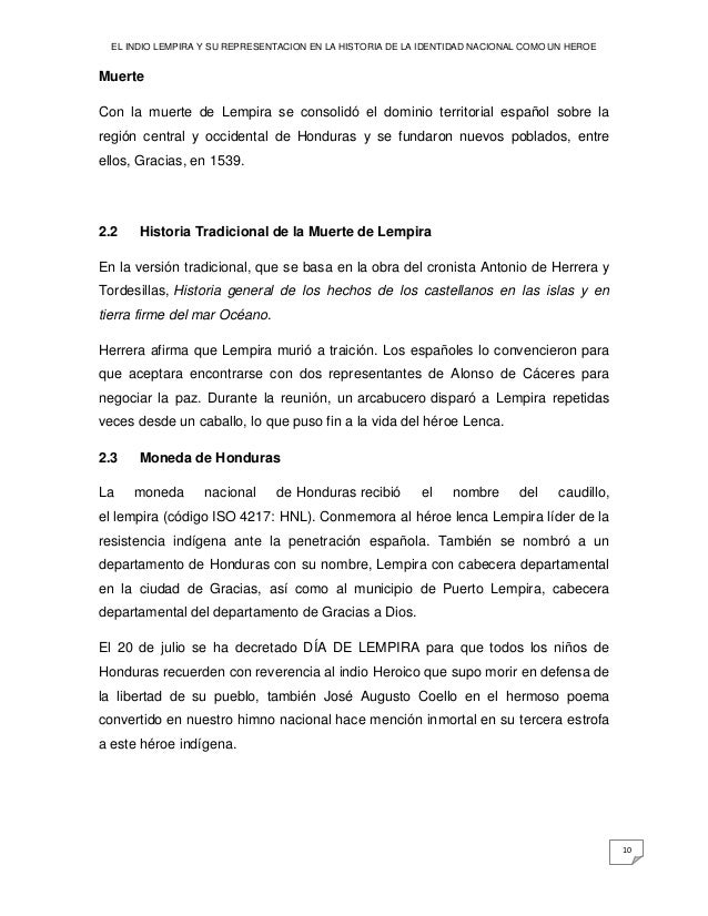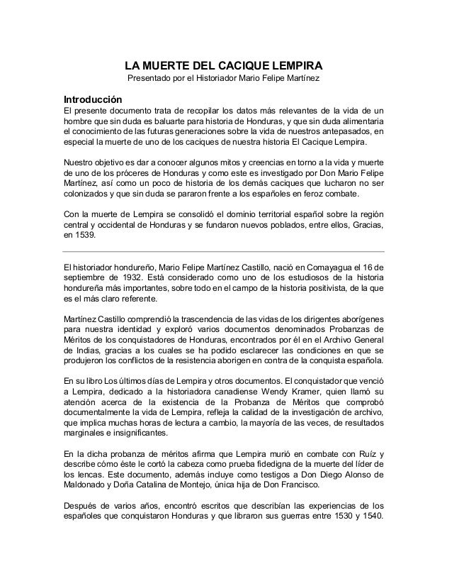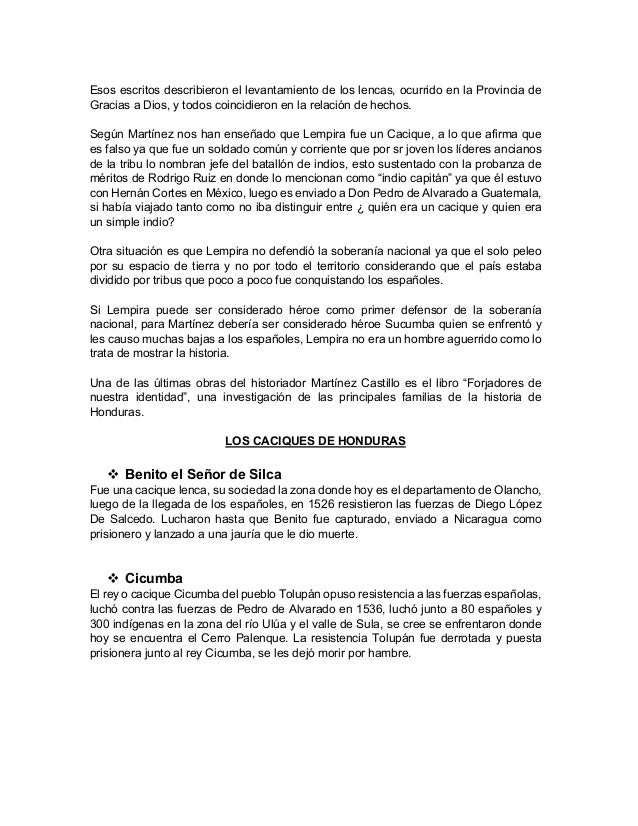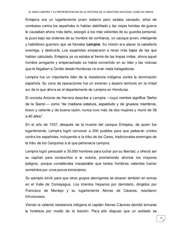 La Historia Tradicional Del Cacique Lempira Docx La Historia
