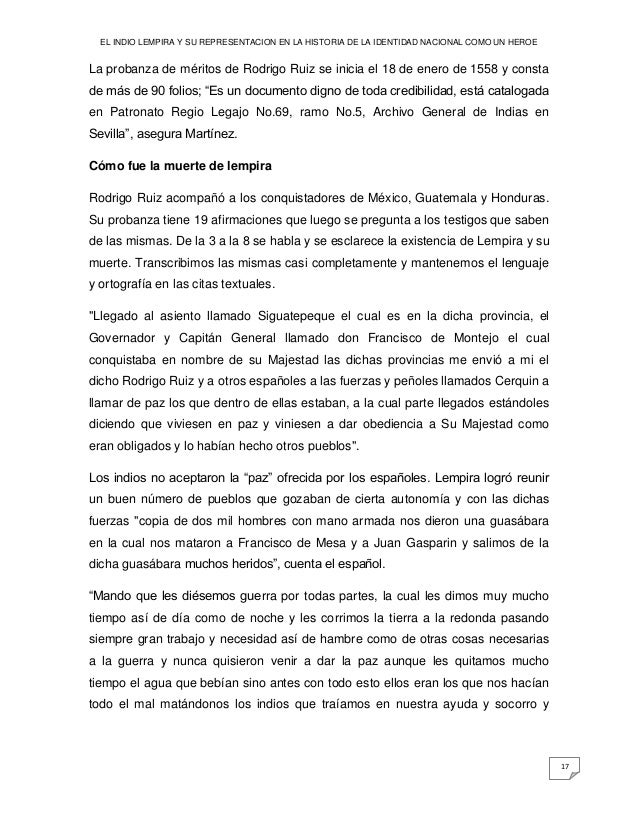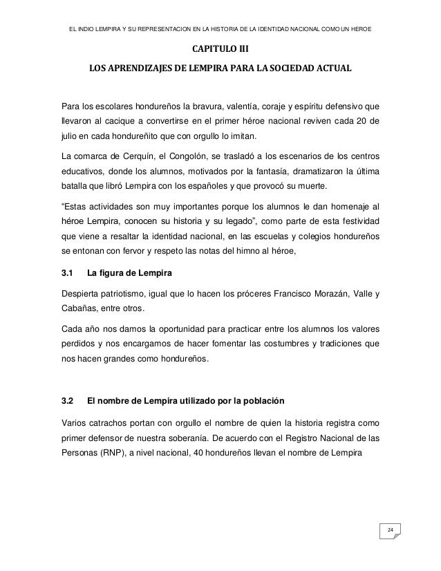 El Indio Lempira Y Su Representacion En La Historia De La Identidad N