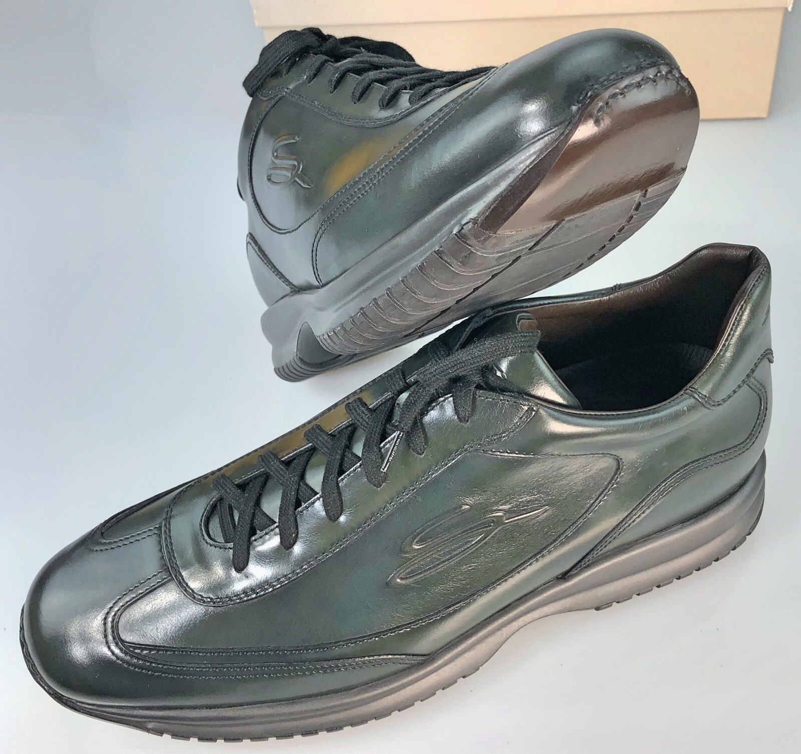 Santoni Sneaker Dark Green Calfskin Logo Tiendamia Com