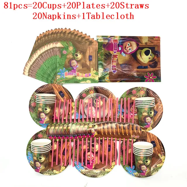 Masha Y Oso Tema 51 Unids Lote Platos De Papel De Diseno Tazas