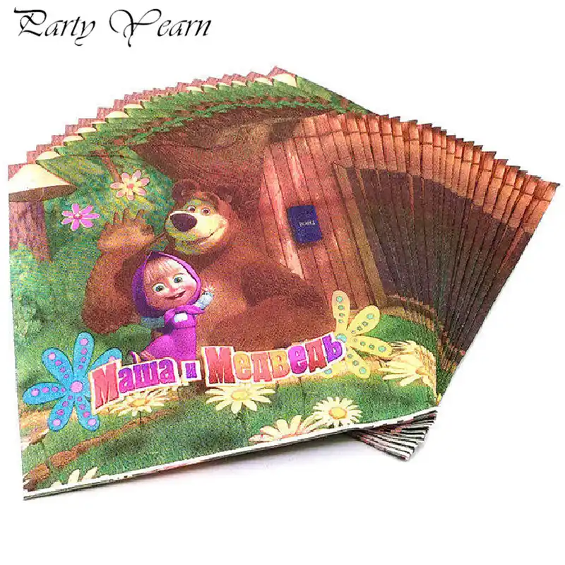 20 Piezas Servilletas De Papel Desechables Vajilla Masha Y Diseno