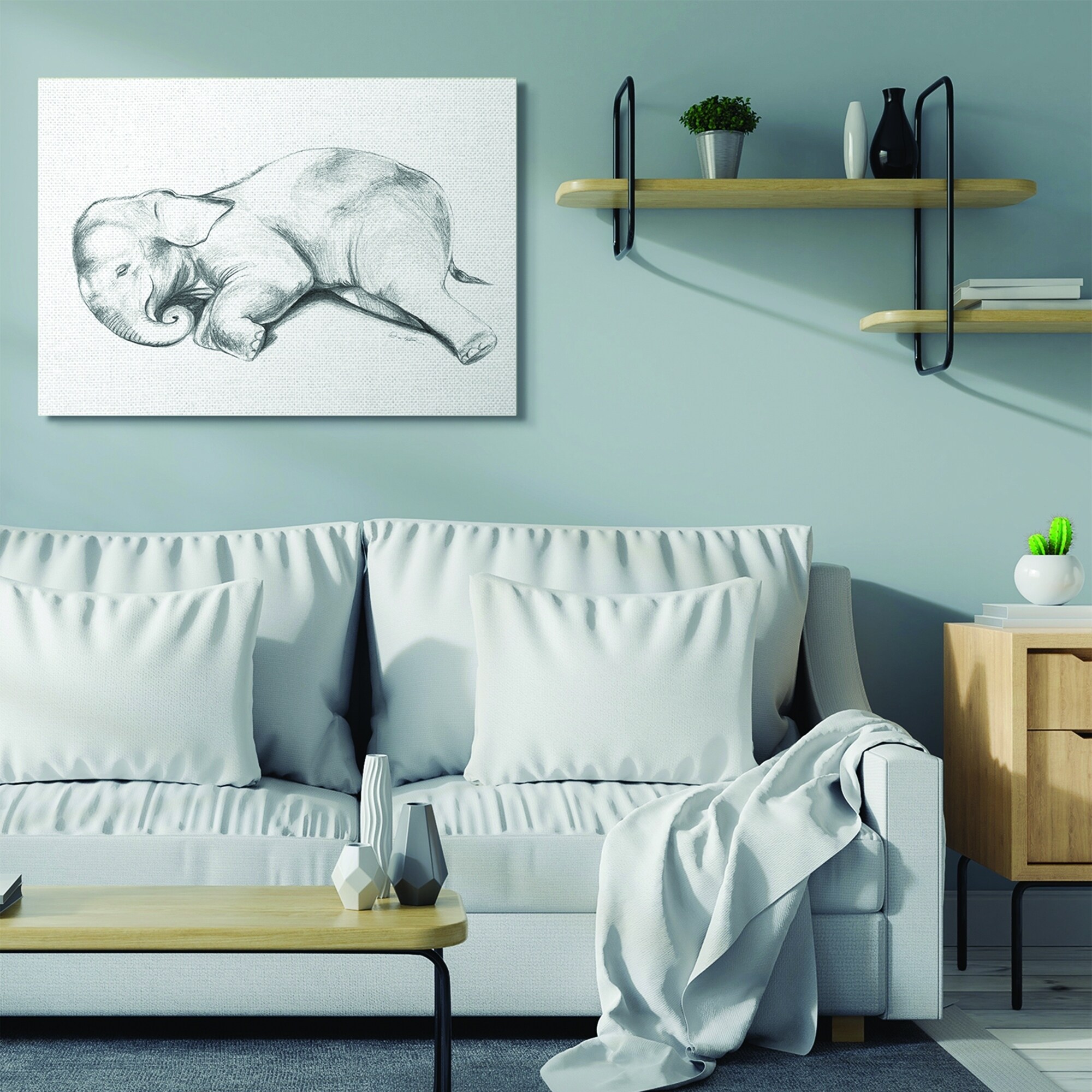 Stupell Industries Cute Elephant Baby Animal Neutral Grey Drawing