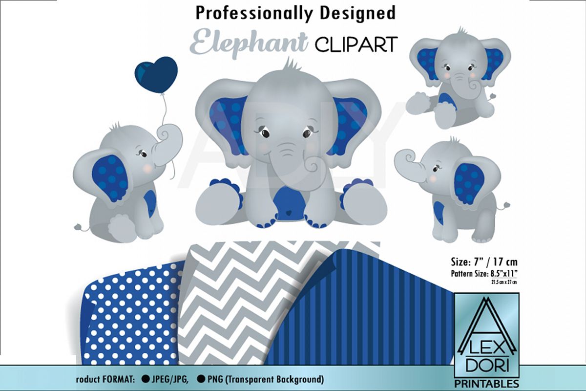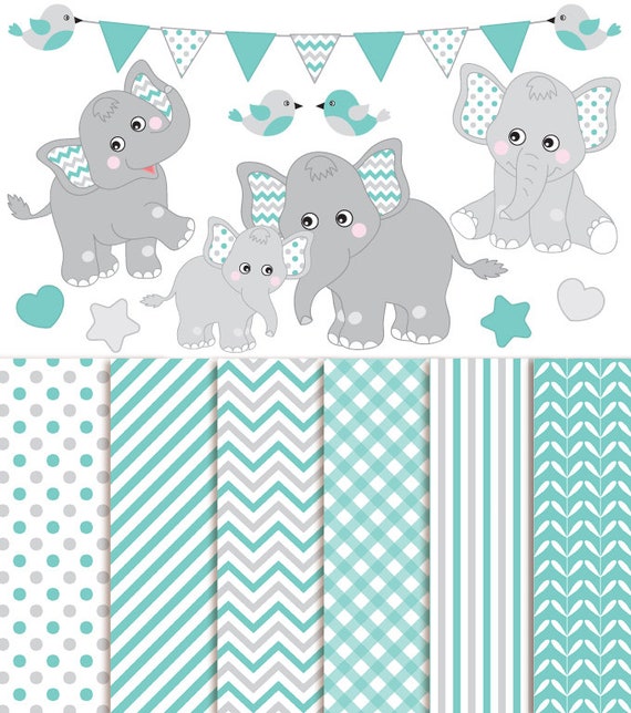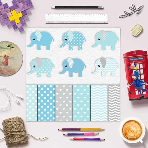 Baby Elephant Clipart Digital Paper Vector Baby Boy Etsy
