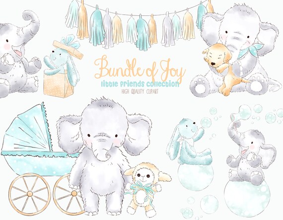 Boy Elephant Clipart Cute Baby Boy Watercolor Little Animal Etsy