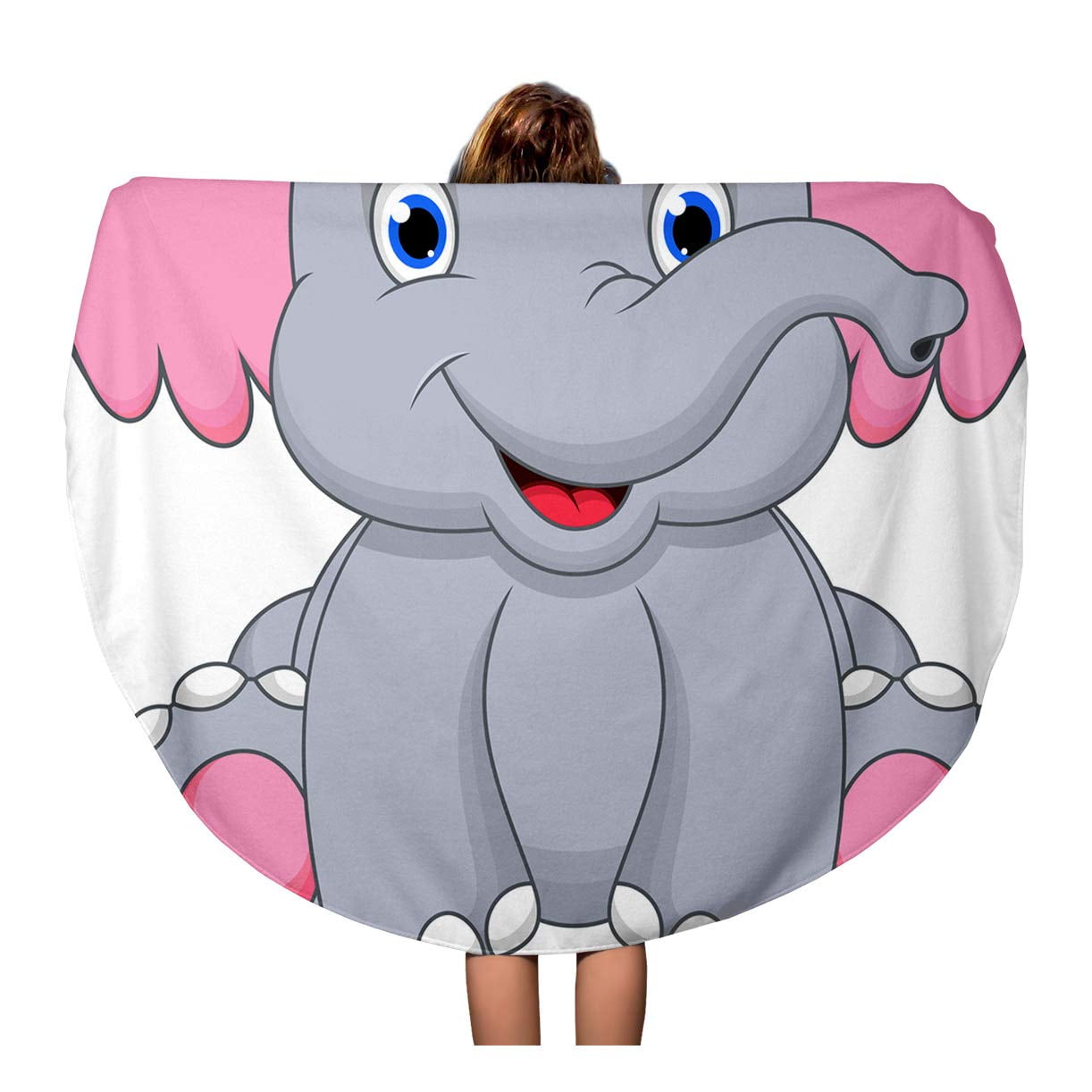 Nudecor 60 Inch Round Beach Towel Blanket Cute Baby Elephant