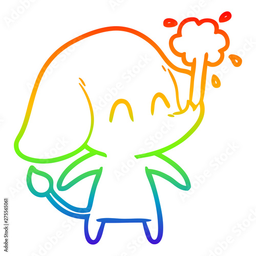 Rainbow Gradient Line Drawing Cute Cartoon Elephant Spouting Water