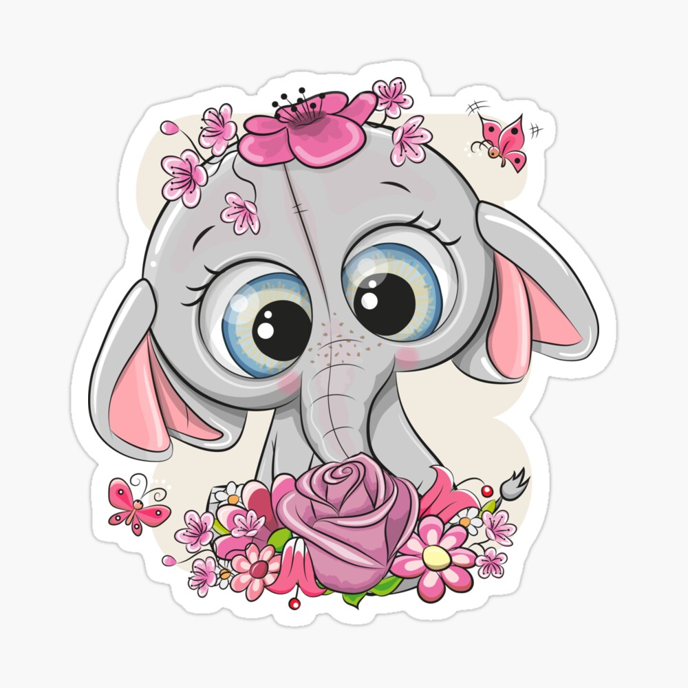Cute Cartoon Elephant With Flowers Poster By Reginast777 Redbubble
