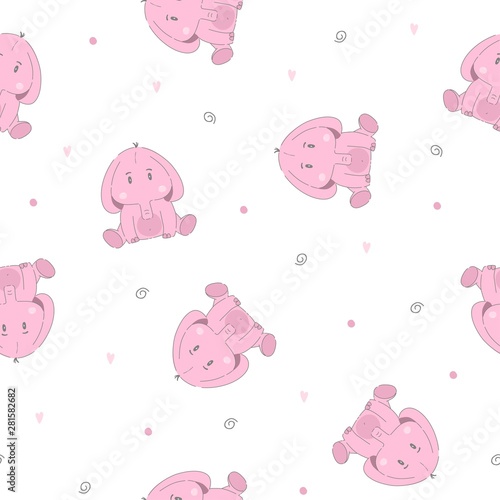 Cute Elephant Cartoon Baby Seamless Vector Pattern Funny Kid