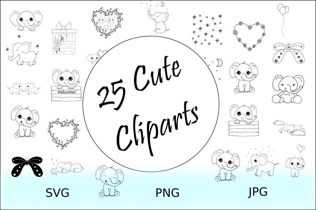 Baby Elephant Outline Png Files Digital Prints Download Etsy