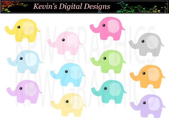Colorful Rainbow Cute Elephants Clipart Set In A Png Format Etsy