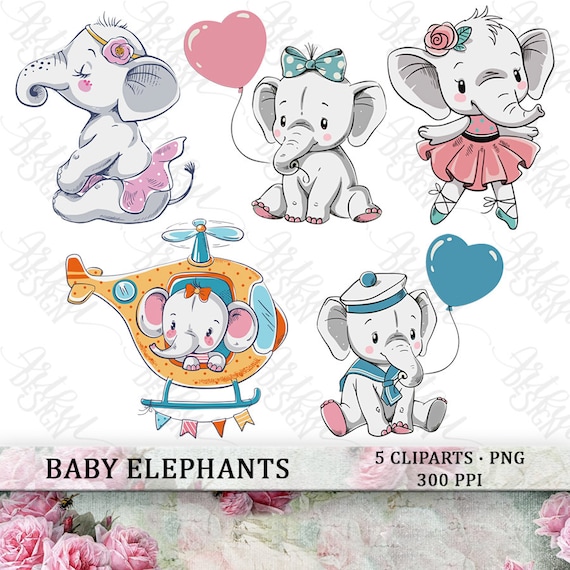 Watercolor Baby Elephant Clipart Png Boy Girl Digital Download Etsy