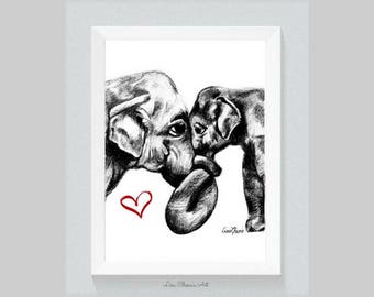 Mother And Baby Elephant Drawing Print Elephant Drawing Baby