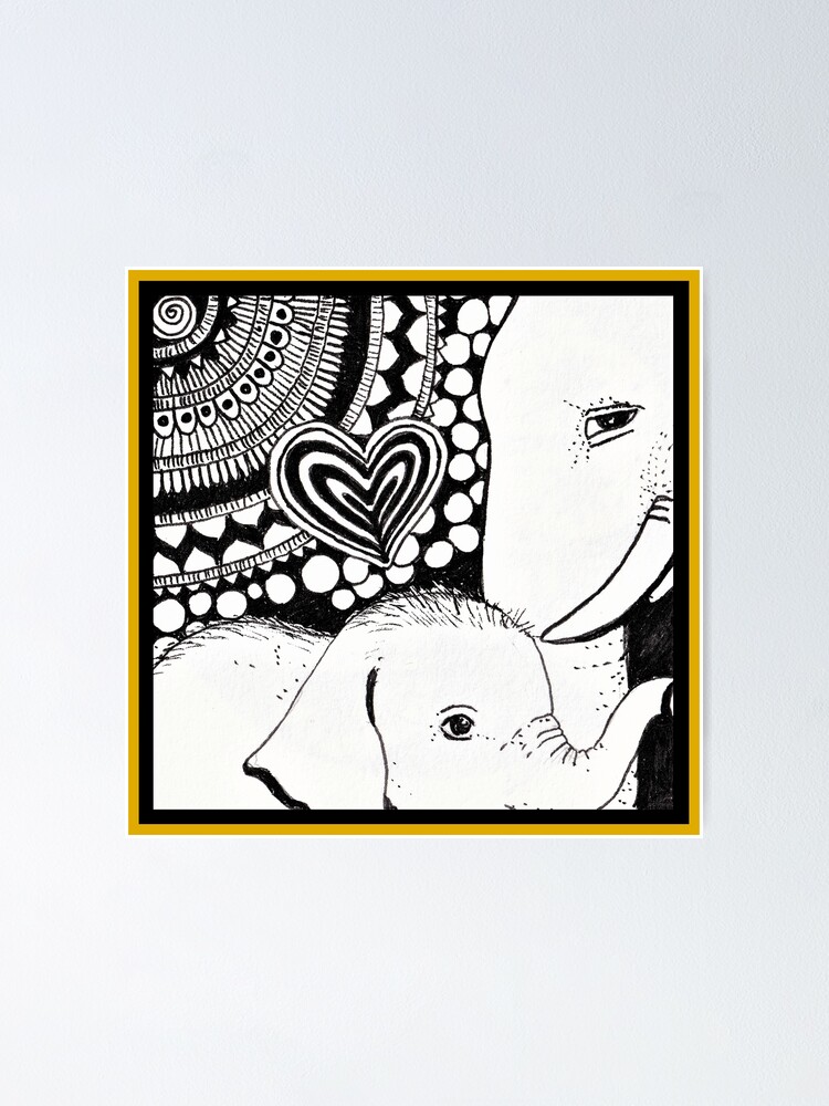 Mother And Baby Elephants Cute Ink Art Poster By Oirabot Redbubble