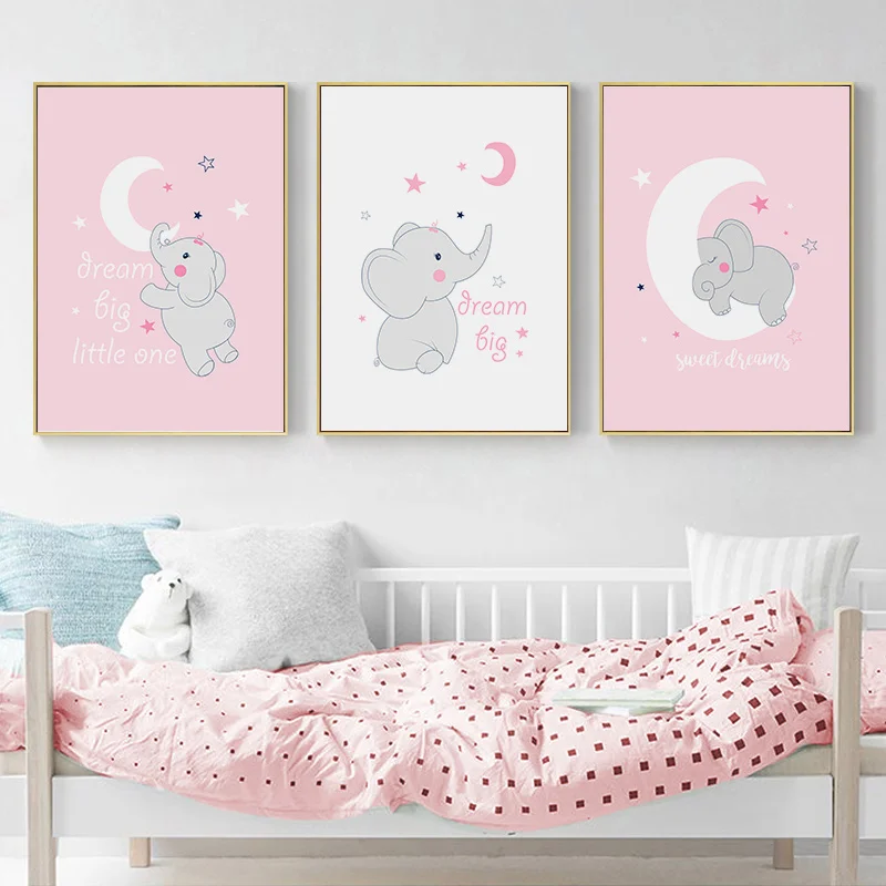 Cartoon Animal Cute Pink Baby Elephant Posters And Prints Nursery
