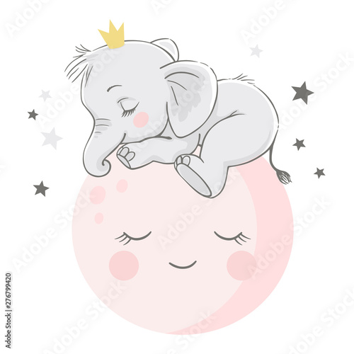 Vector Hand Drawn Illustration Of A Cute Baby Elephant Sleeping