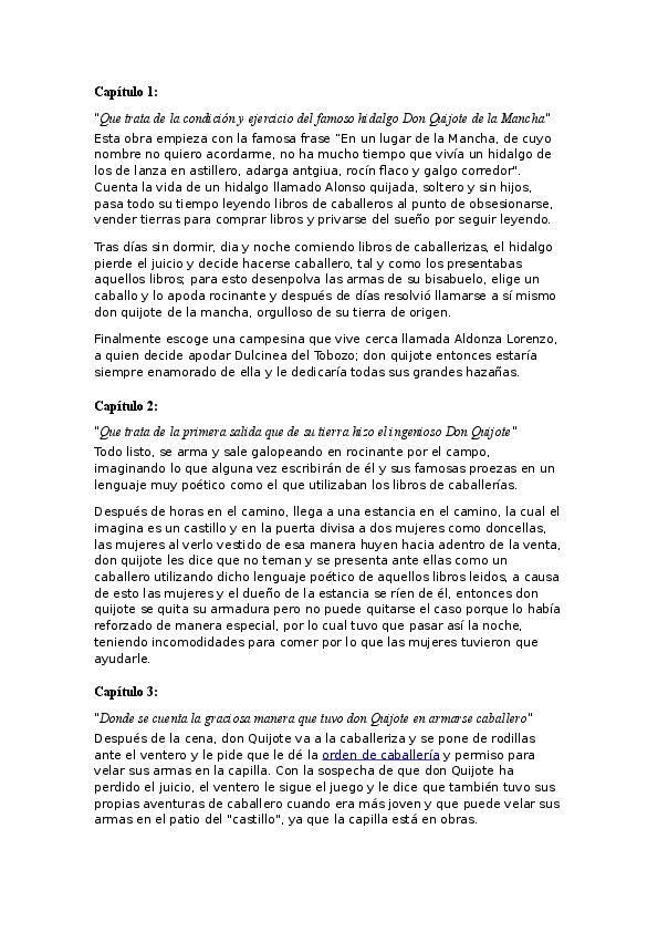 Resumen Don Quijote De La Mancha Docsity