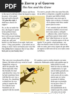 La zorra y el cuervo fabula infantil. La zorra y el cuervo comparte aprende y diviertete. Atraido por el aroma un zorro que pasaba por ahi le dijo buenos dias senor cuervo. Ciertamente hermosa ave no hay entre los pajaros otro que tenga la brillantez de tus plumas ni tu gallardia y donaire.