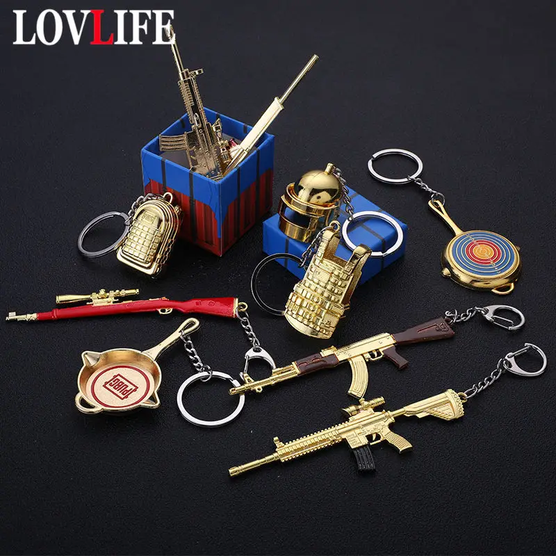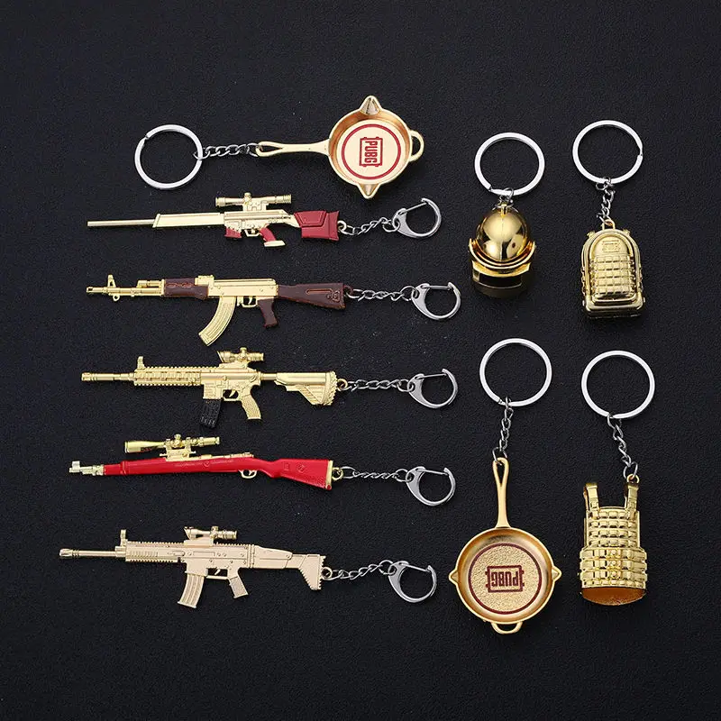 Llavero Pubg Casco Dorado Modelo De Arma Ak47 98k Rifle De