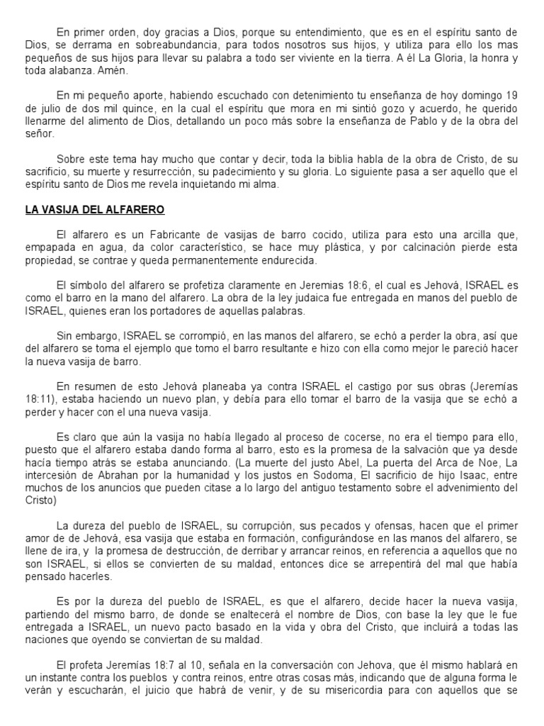 La Vasija Del Alfarero Vasijas De Barro Doc Document