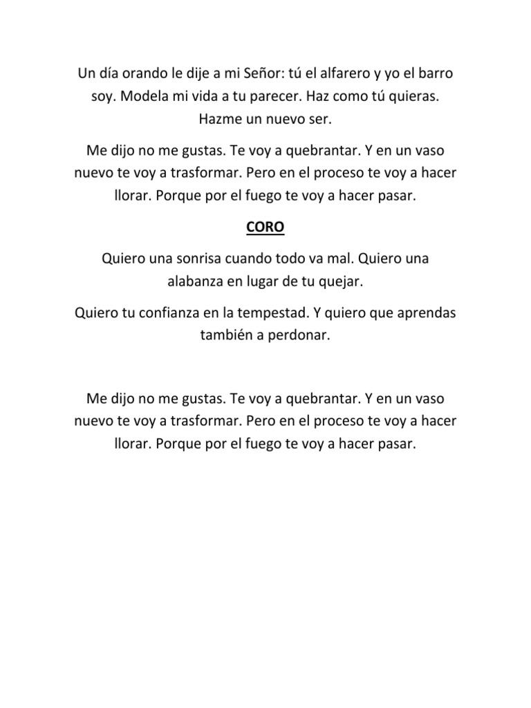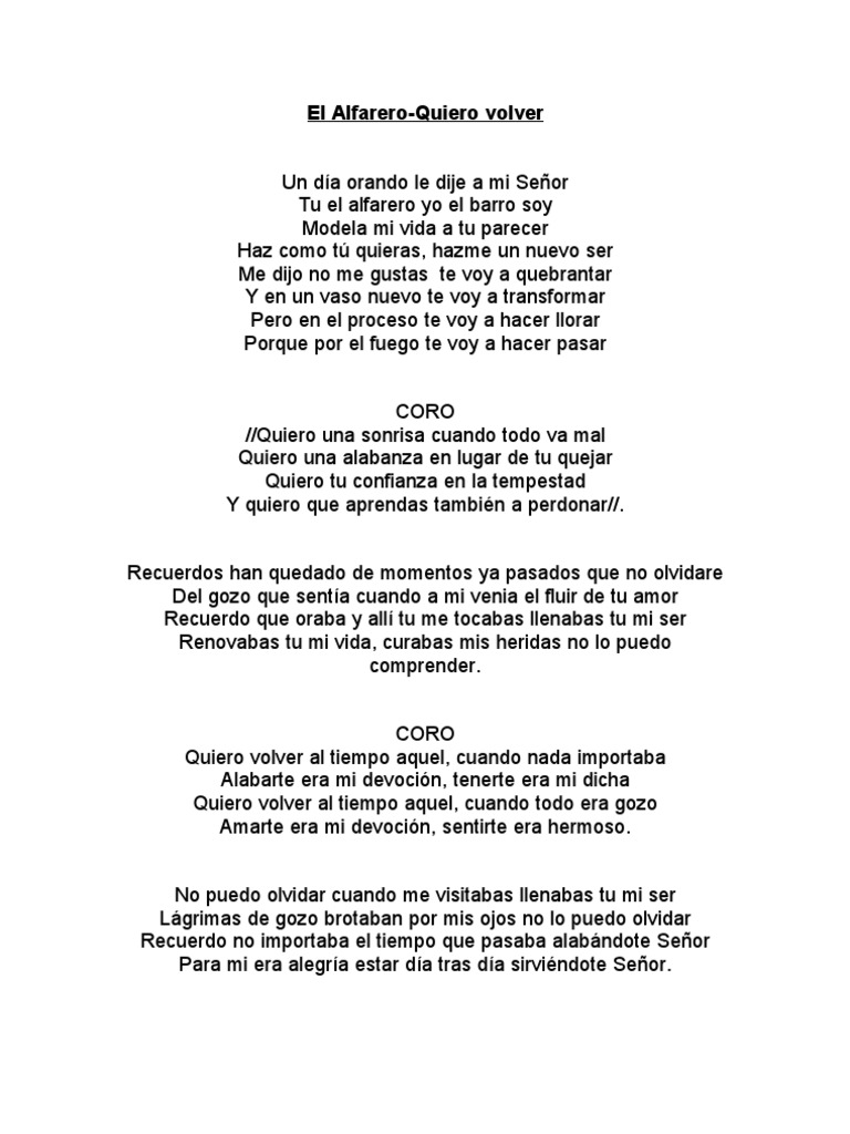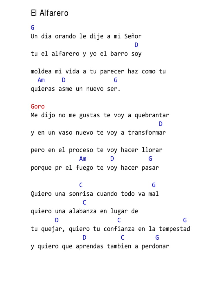 El Alfarero Letra Y Acordes Canto De Transformacion Youtube