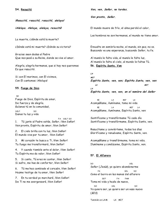 Cantos Para Misa Resucito Letra Y Acordes Salida O Despedida