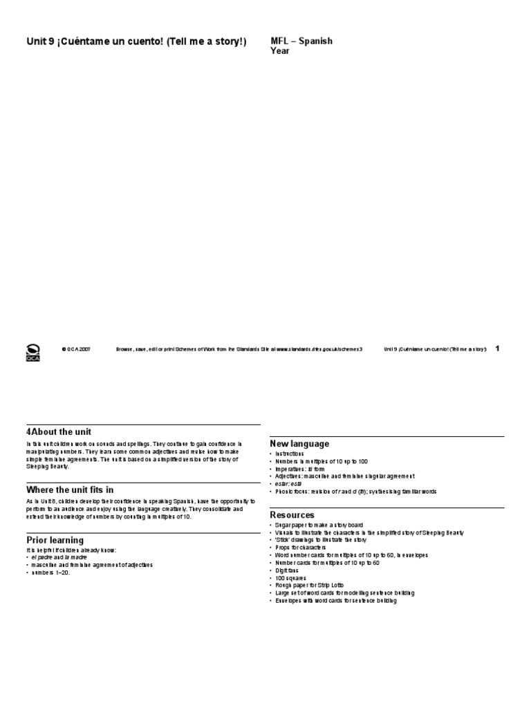 Unit 9 Spanish Cuento Adjective Noun