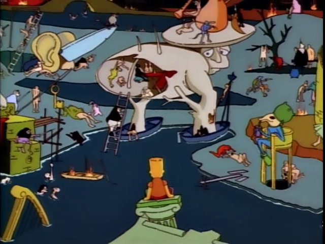 Data Simpsons On Twitter Cuando Bart Desciende Al Infierno Despues De Ser Chocado Por Burns La Primera Imagen Que Ve De Este Lugar Es Una Referencia Al Panel El Infierno Del Triptico