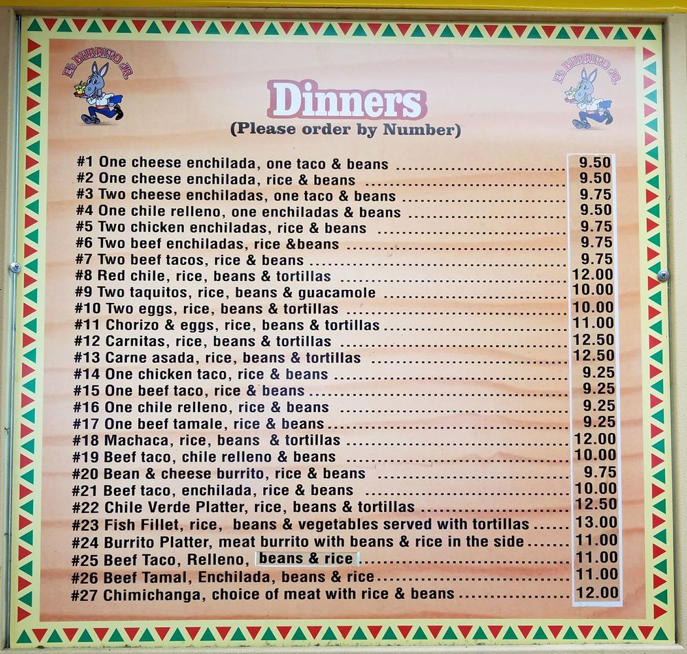El Burrito Jr Menu Menu For El Burrito Jr Torrance Torrance