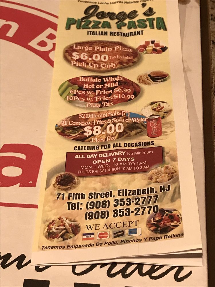 Online Menu Of Jorge Pizza Restaurant Elizabeth New Jersey