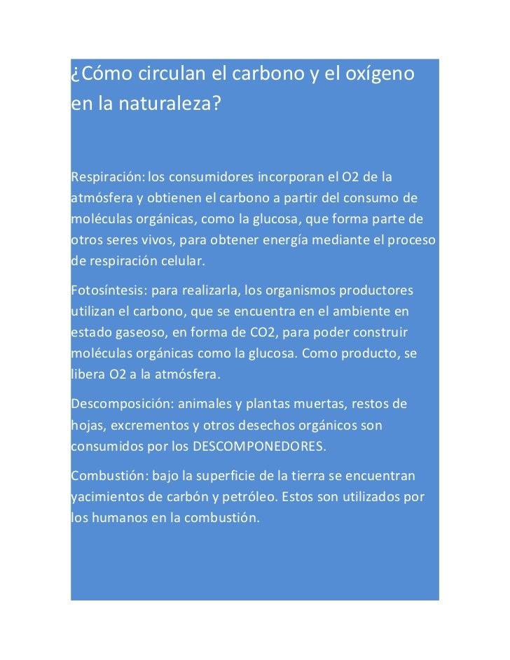 Como Circula El Oxigeno Y El Carbono En La Naturaleza