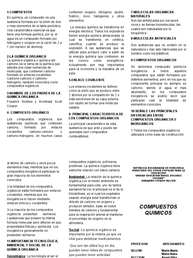 Triptico Compuestos Quimicos Doc Carbon Compuestos Organicos