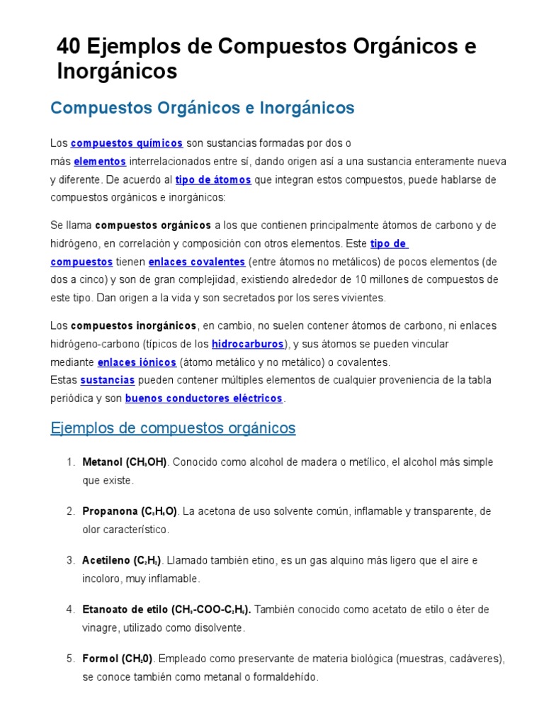 40 Ejemplos De Compuestos Organicos E Inorganicos Yl4wyrm7z7qr