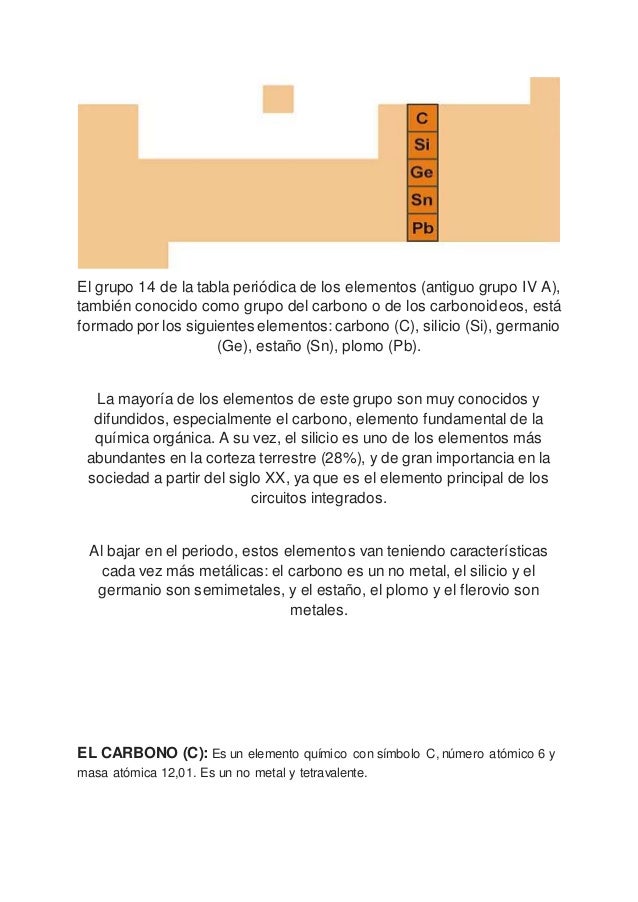 Los Grupos De La Tabla Periodica Carbonoideos