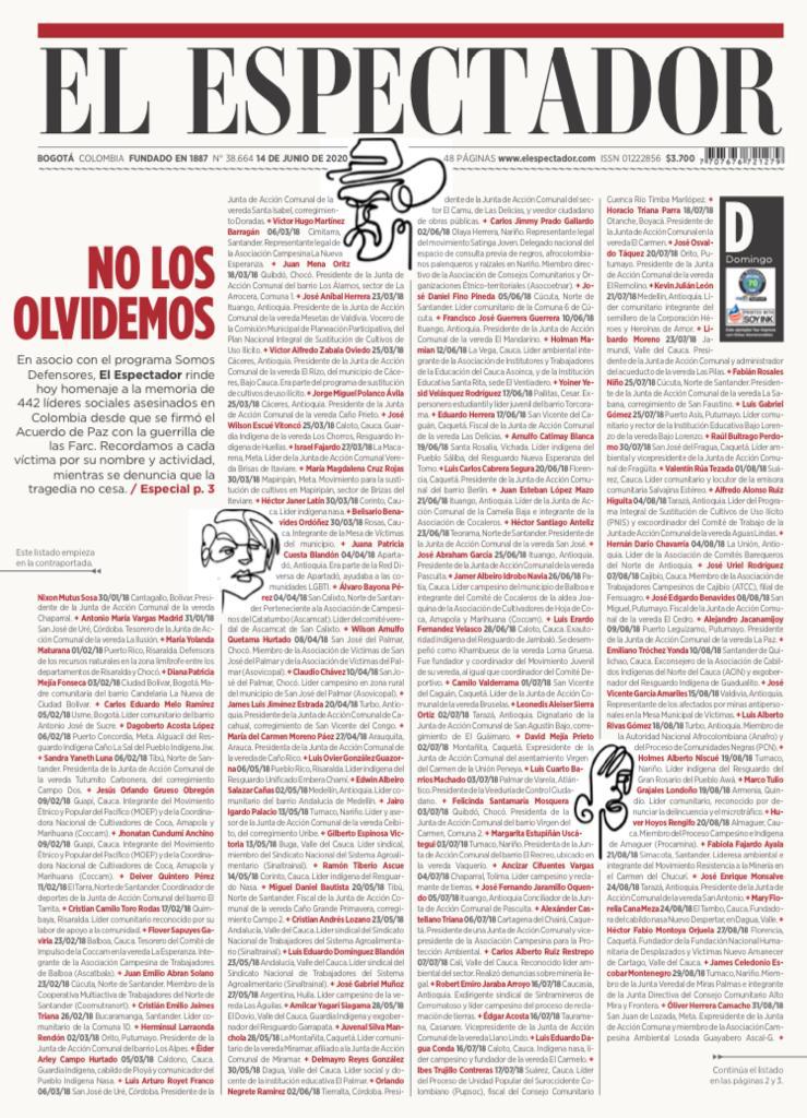 Portada De El Espectador Colombia Periodismo Colombia Kiosko