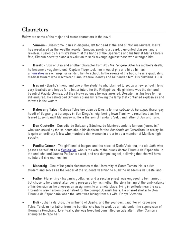 El Filibusterismo Part 2 Docx Characters Below Are Some Of The